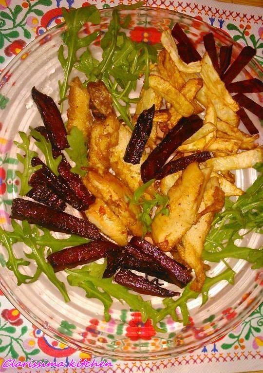 Mai ebéd ajánlat:sült zeller,cékla,csirkemell,és ruccola./fűszerek ízlés szerint/Hmm!! :) Jó étvágyat!!